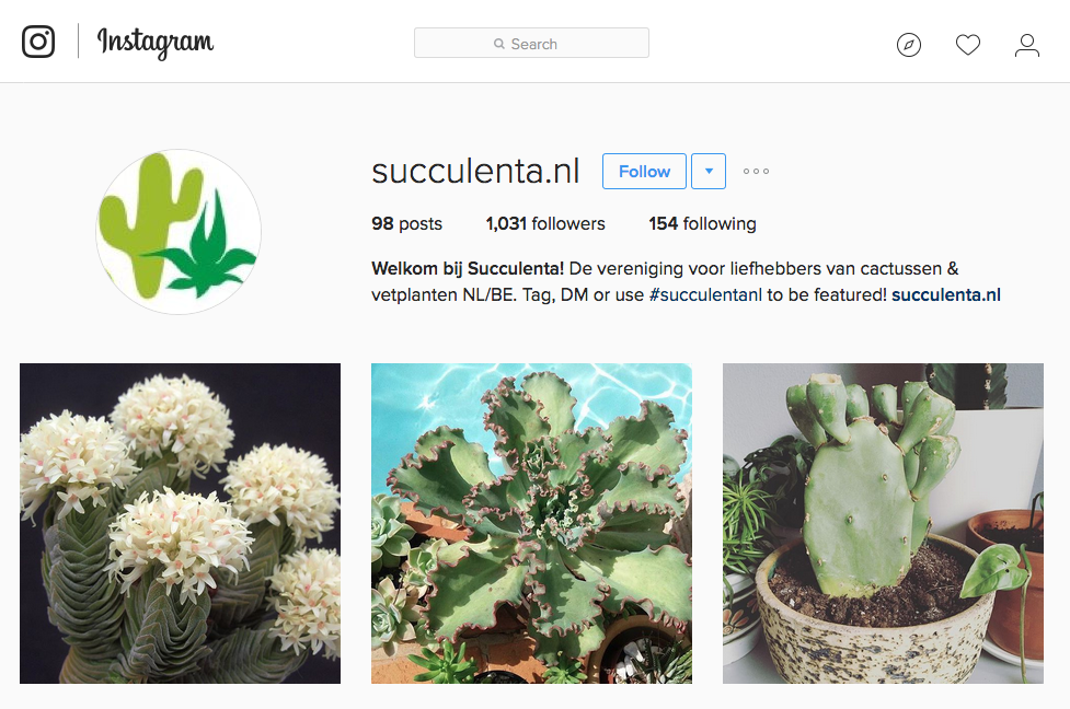 Meld je aan en volg ons. Mooie foto’s kan je taggen, dan kan Succulenta ze plaatsen.