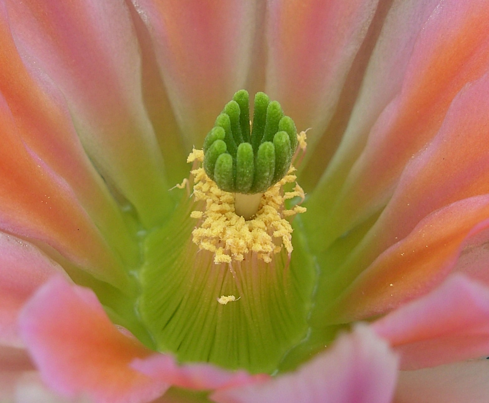 roetteri 3De tamelijk grote bloemen (ongeveer 8 cm in diameter) zijn in de regel helder purperrose, maar ze kunnen ook geel of oranje zijn. Opvallend is dat de bloemblaadjes in het midden donkerder zijn. Dat zal de invloed van vader E. dasyacanthus wel zijn. Die heeft dat ook heel duidelijk. Zie bijvoorbeeld de foto van Bertus Spee in het januarinummer van Succulenta van 2010 (blz. 7).