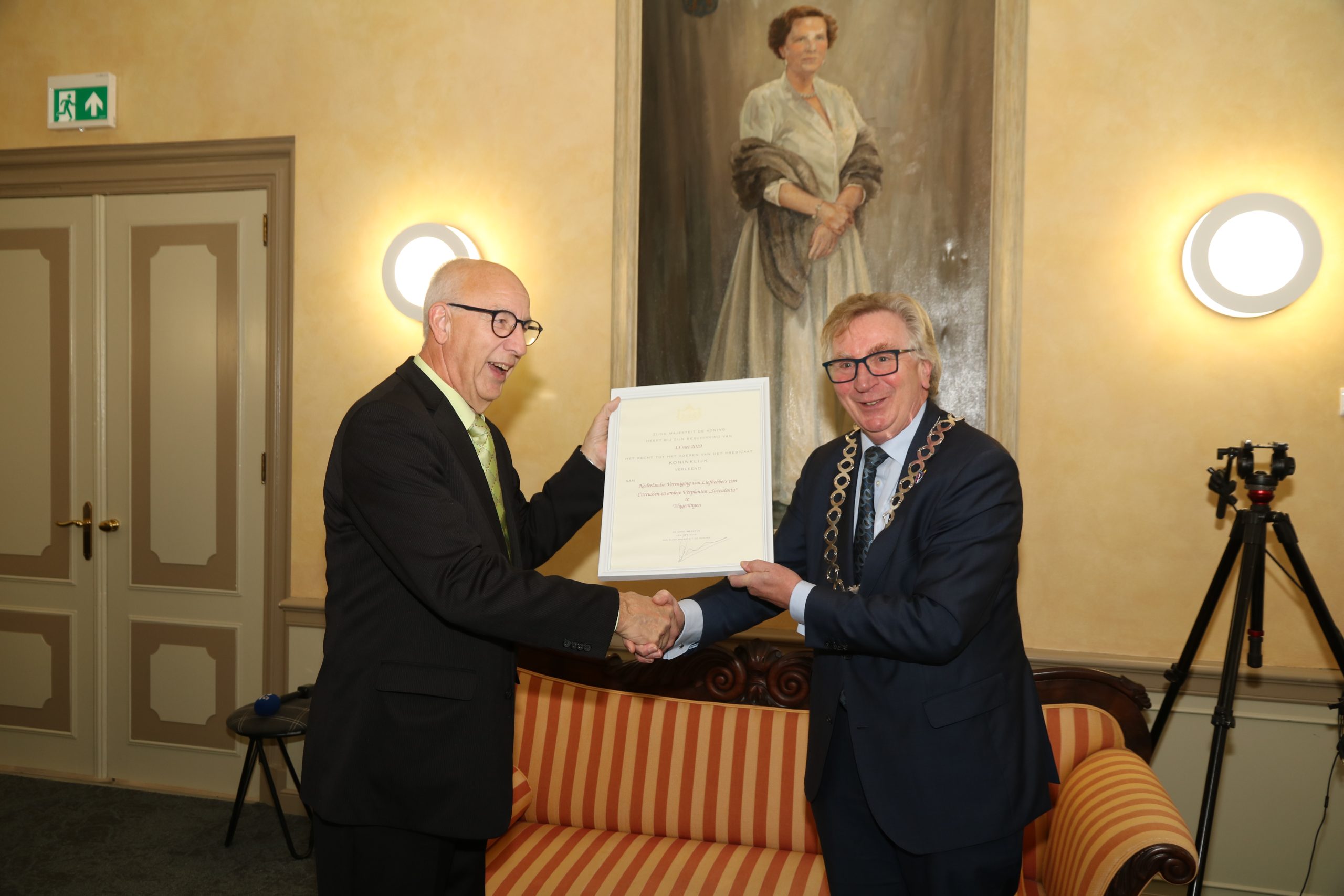 Op donderdagmiddag 14 november 2019 reikte de burgemeester van Wageningen, Geert van Rumund, het predicaat Koninklijk voor Succulenta uit aan haar voorzitter Frans Mommers.