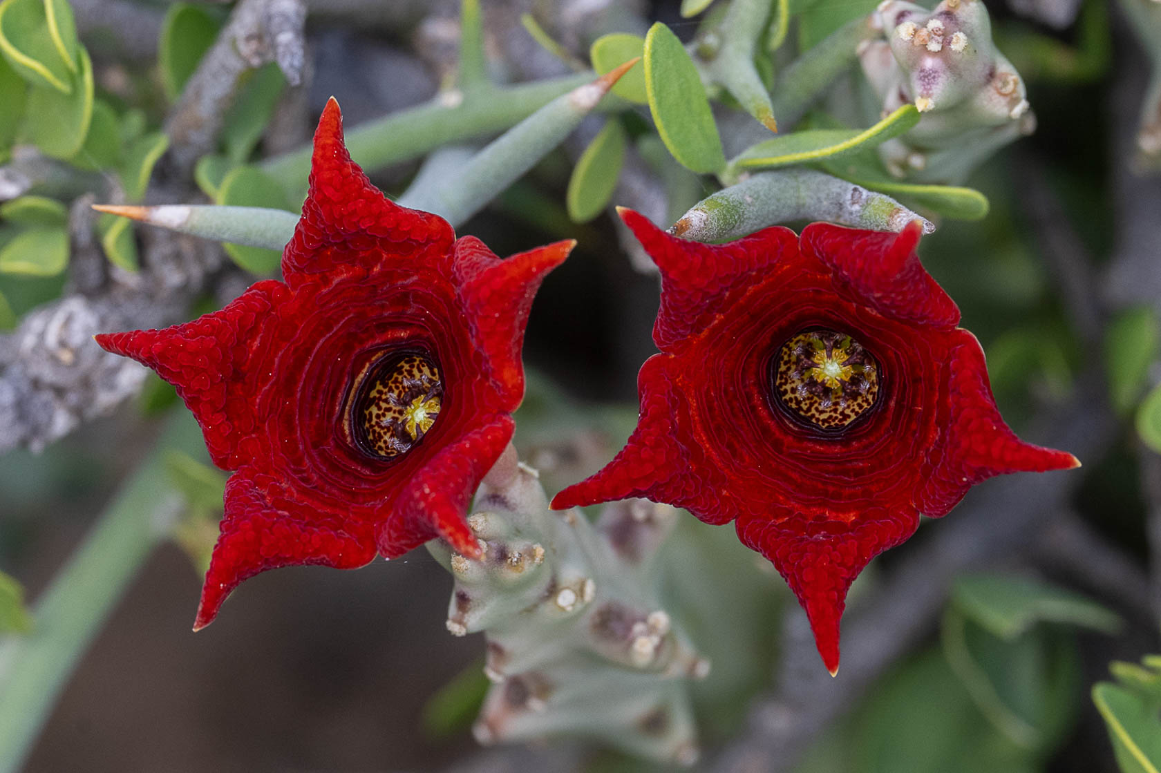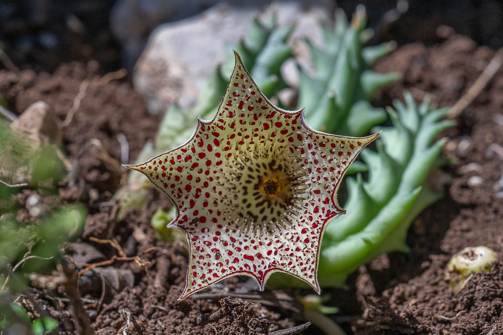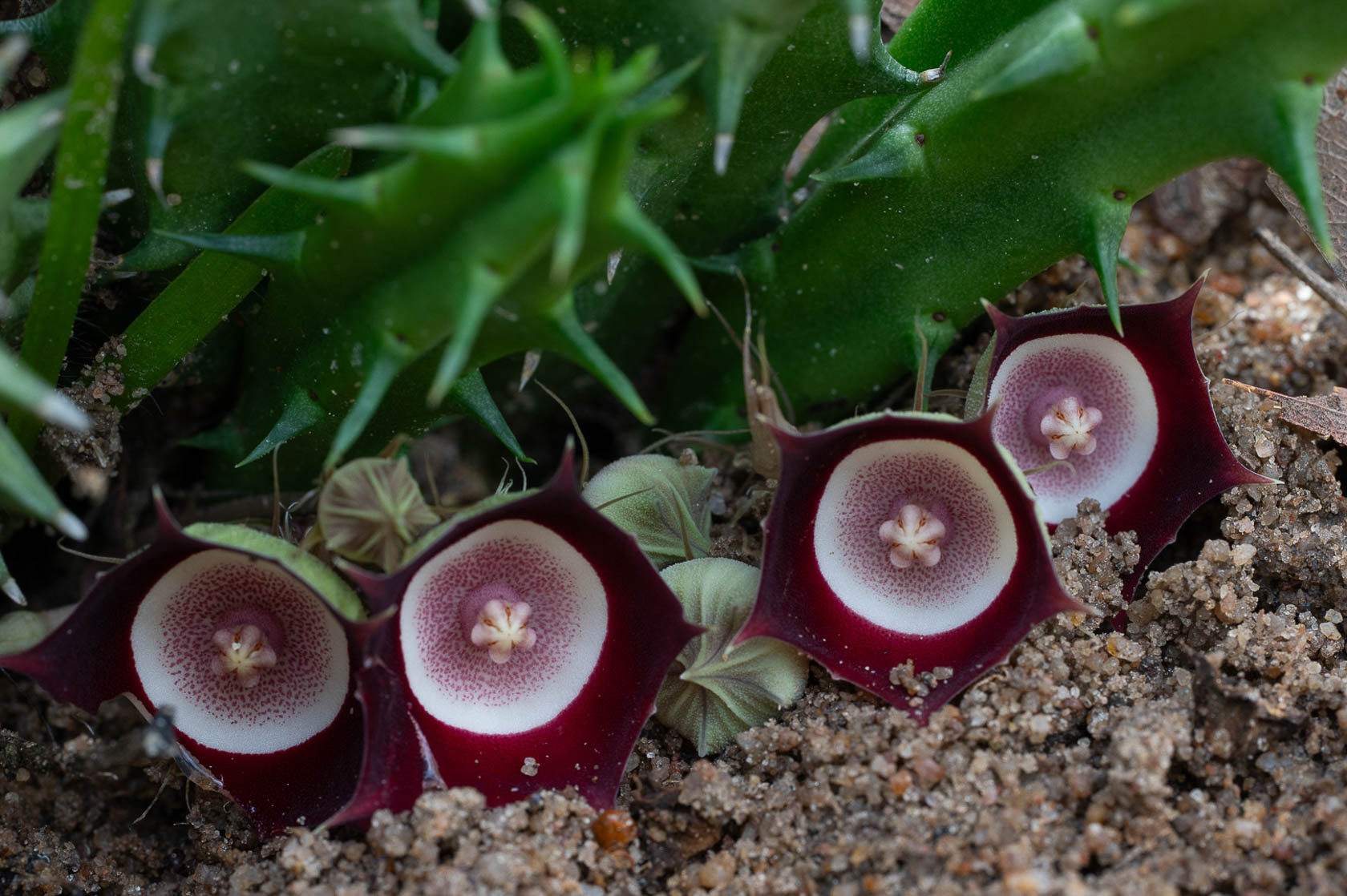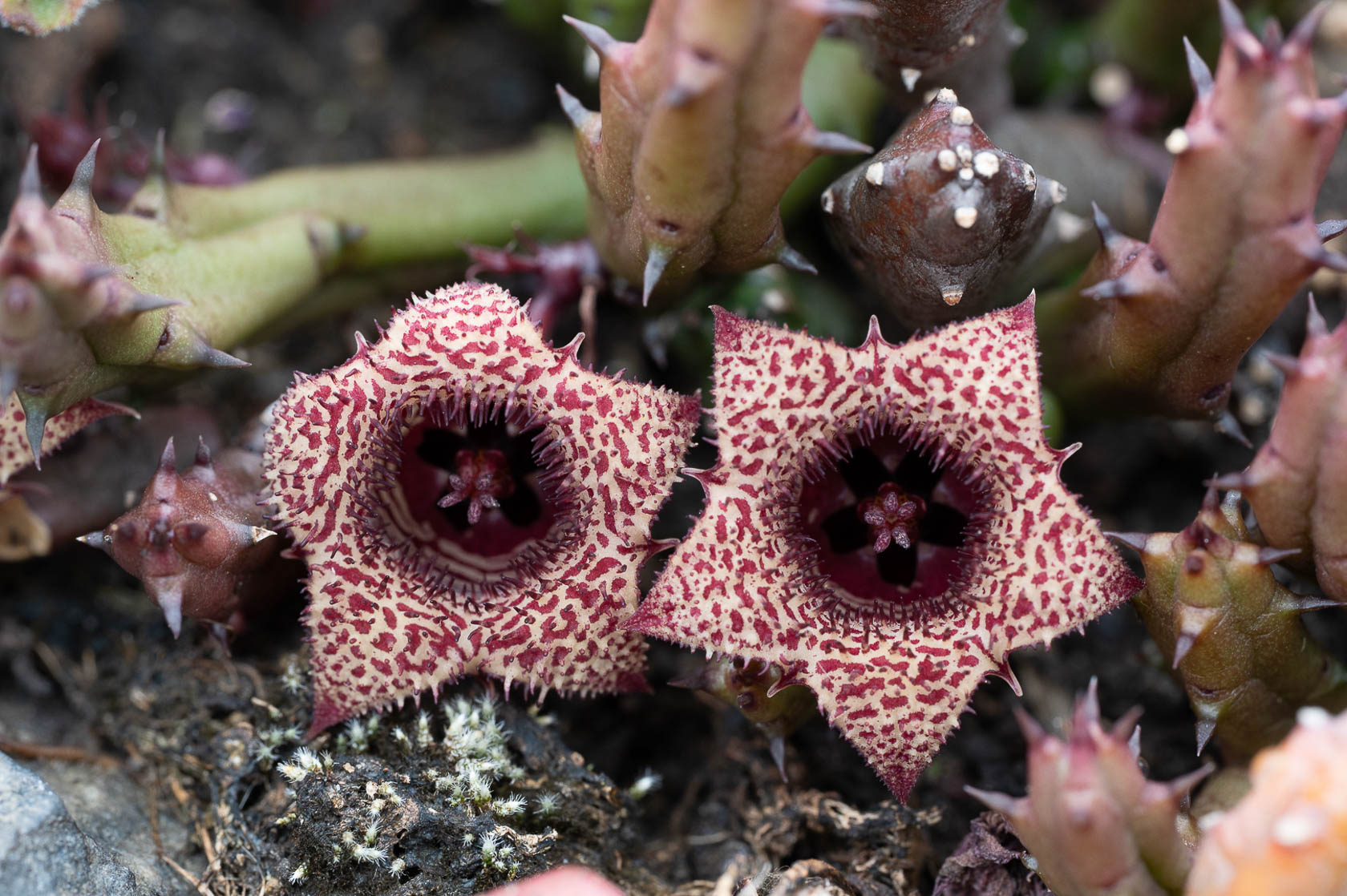 7. Stapelia-achtigen; van oost naar west, van noord naar zuid.